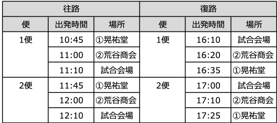 臨時駐車場から試合会場まで、無料シャトルバスを運行します。